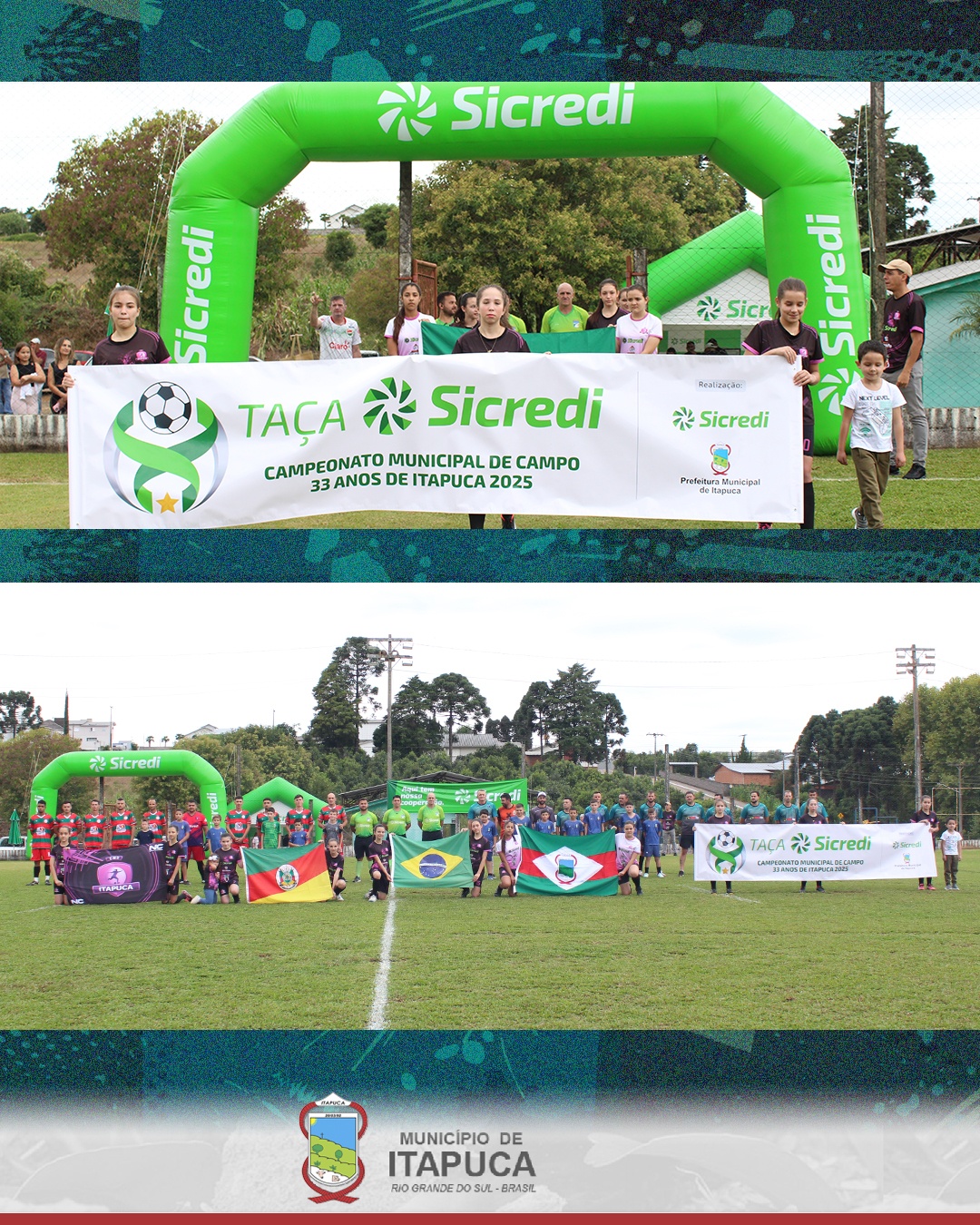 No sábado, dia 12 de abril de 2025, ocorreu a abertura do CAMPEONATO DE FUTEBOL 7 | 2025 – TAÇA SICREDI! Evento que faz parte da comemoração dos 33 anos de Itapuca, com as primeiras equipes disputando entre si!