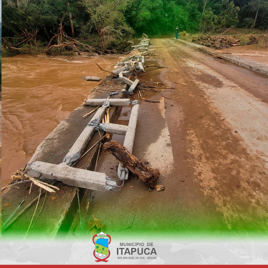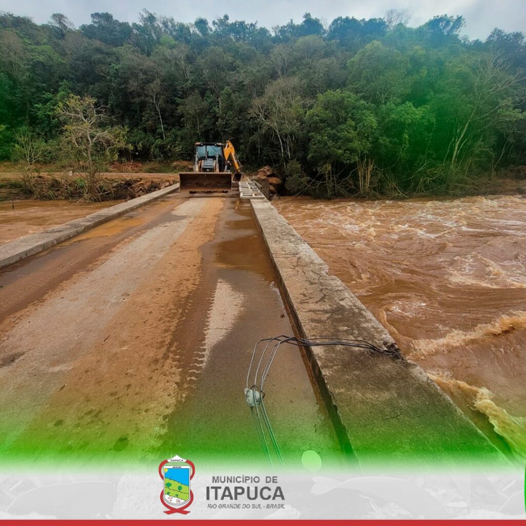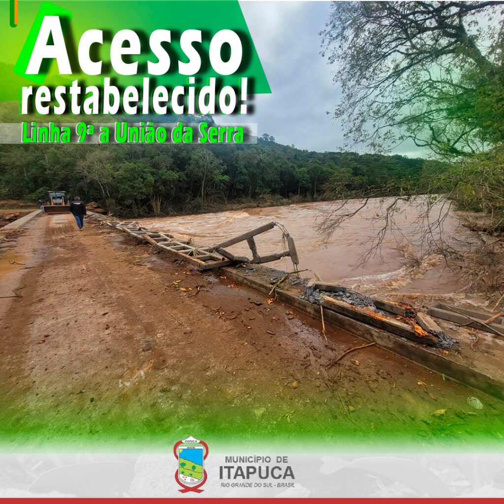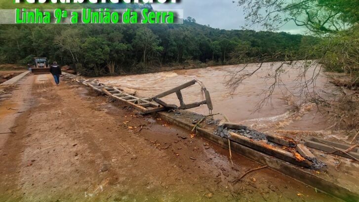 Pela parte desta manha reestabelecemos o acesso à ponte que liga os municípios de Itapuca e União da Serra, pela comunidade da Linha 9ª, após vários danos causados na estrutura da ponte devido a elevada quantidade de chuva. O trabalho foi desenvolvido em parceria com a prefeitura de União da Serra.