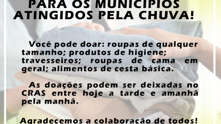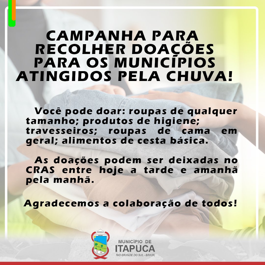 5set2023 Estamos organizando uma campanha para recolher doações para enviar aos Municípios afetados pela chuva. Maiores informações entre em contato pelo telefone (51)999775942.
