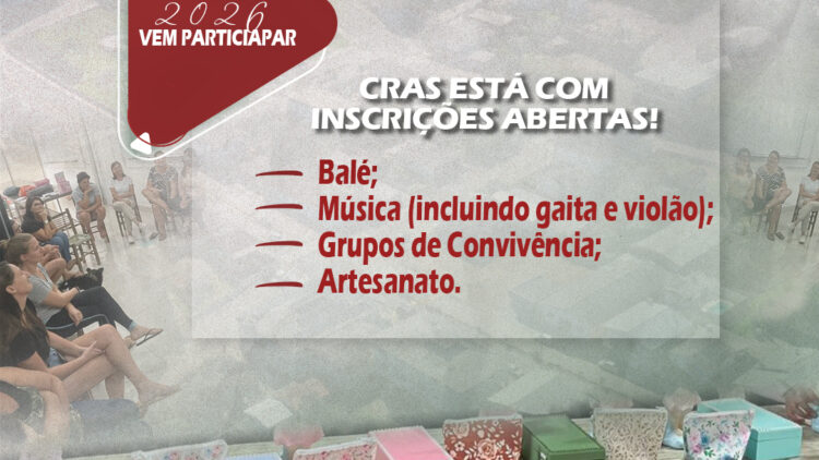 7 jan 2026 INSCRIÇÕES ESTÃO ABERTAS NO CRAS! 7 de janeiro de 2026 Itapuca - Imprensa Notícias CRAS de Itapuca está com inscrições abertas para...leia mais