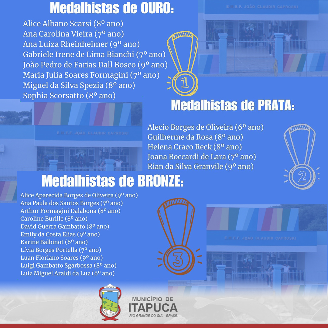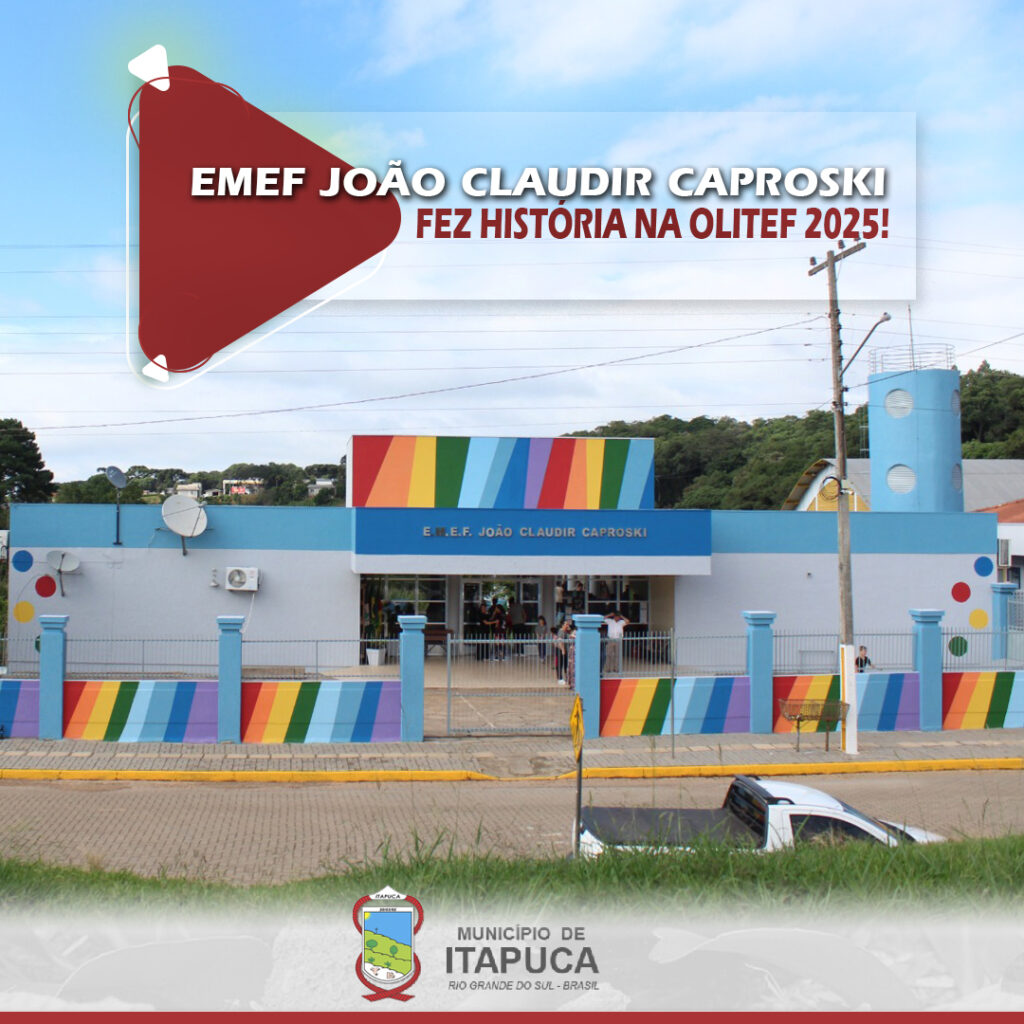 A Prefeitura Municipal de Itapuca, por meio da Secretaria de Educação, parabeniza todos os estudantes e educadores da EMEF João Claudir Caproski pela conquista e por levarem o nome da escola e do município com tanto orgulho e dedicação.