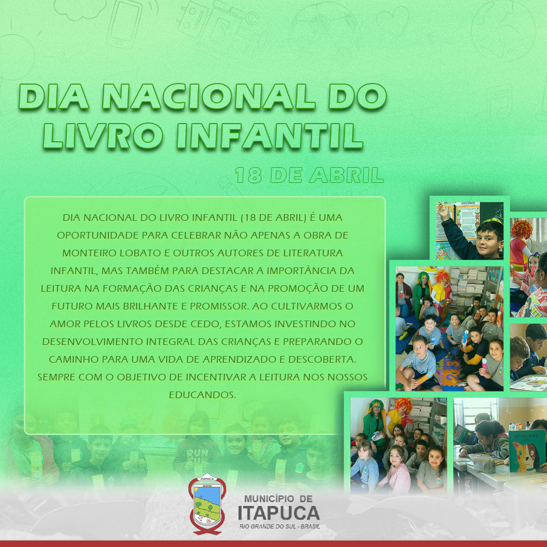 *Dia Nacional do Livro Infantil (18 de abril) é uma oportunidade para celebrar não apenas a obra de Monteiro Lobato e outros autores de literatura infantil, mas também para destacar a importância da leitura na formação das crianças e na promoção de um futuro mais brilhante e promissor. Ao cultivarmos o amor pelos livros desde cedo, estamos investindo no desenvolvimento integral das crianças e preparando o caminho para uma vida de aprendizado e descoberta. Sempre com o objetivo de incentivar a leitura nos nossos educandos.