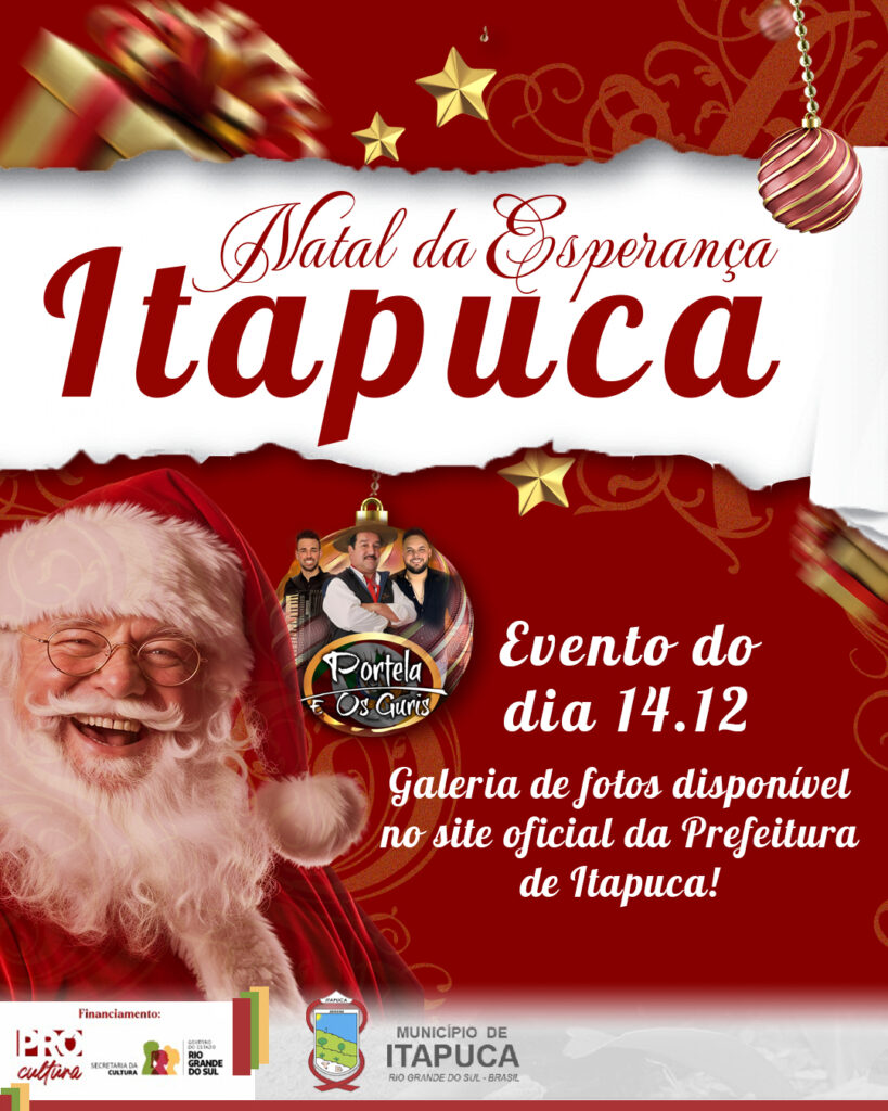 O Natal da Esperança reafirma o compromisso da Administração Municipal em valorizar momentos de convivência, promover cultura e lazer e manter viva a tradição natalina em Itapuca. Cada detalhe da programação foi preparado com carinho, proporcionando à população não apenas entretenimento, mas também a oportunidade de renovar sentimentos de fé, alegria e esperança para o novo ano que se aproxima.