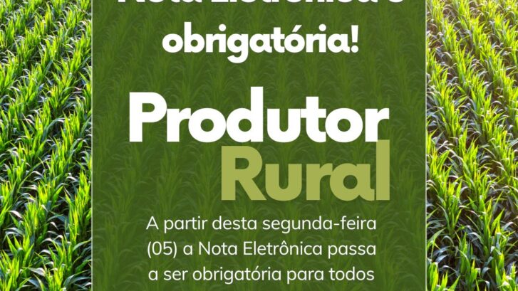 Nota eletrônica passa a ser obrigatória para todos os produtores rurais do Estado a partir desta segunda-feira (5)