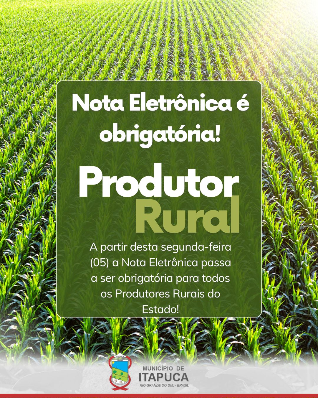 Fonte: https://estado.rs.gov.br Ainda, comunicamos que inicia hoje 05.01.2026 e vai até 15.03.2026 o prazo para os produtores rurais comparecerem junto a Secretaria da Agricultura para fins de apresentar e revisar os blocos talão modelo 15, bem como, atualizar o cadastro referente a Inscrição Estadual.