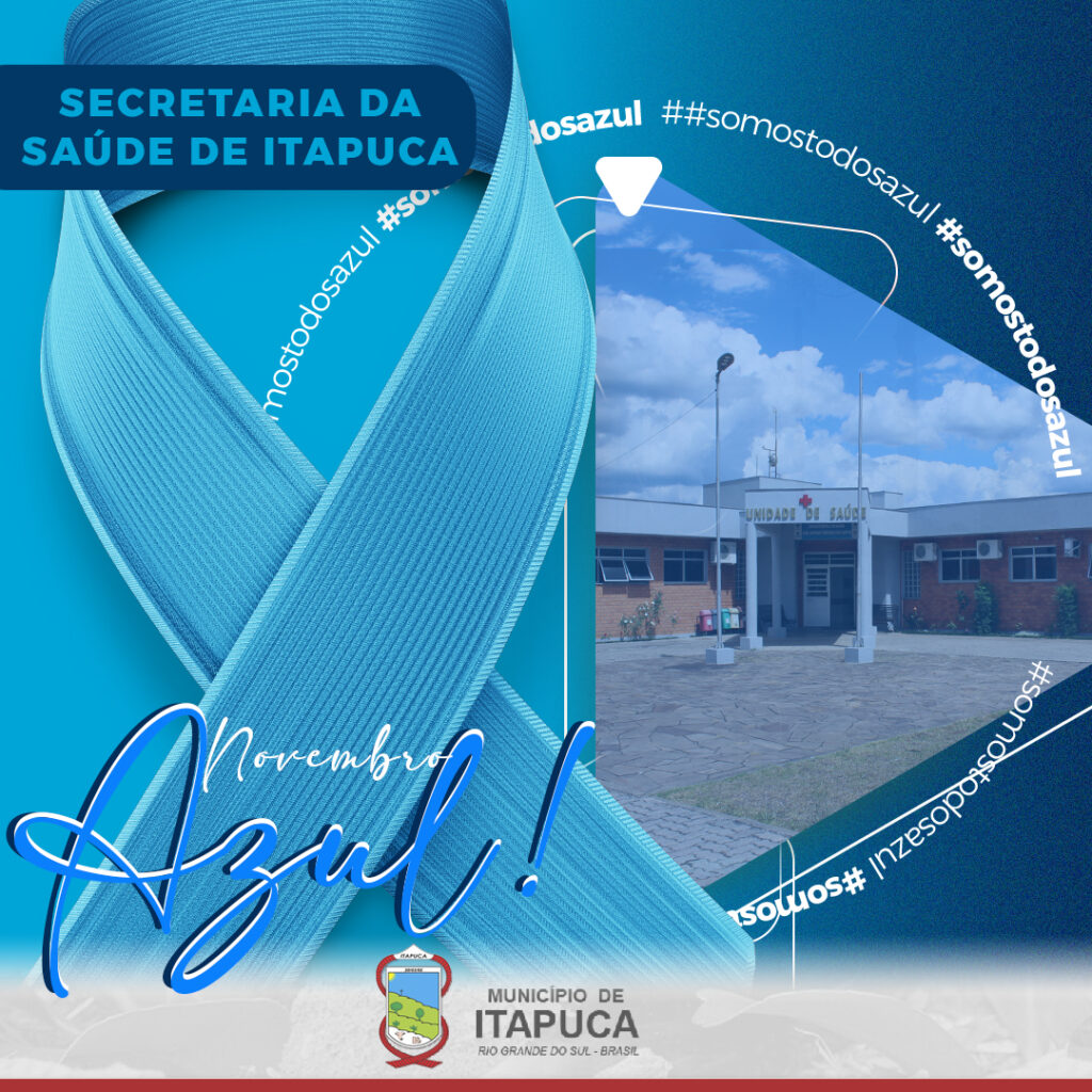 A Prefeitura de Itapuca convida todos os homens, especialmente a partir dos 40 anos, a participarem das atividades do Novembro Azul e colocarem sua saúde em primeiro lugar. Prevenir é um gesto de coragem, cuidado e responsabilidade.