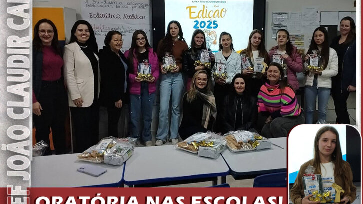 No dia 28 de maio de 2025 a EMEF João Claudir Caproski, realizou pela parte da manhã, o concurso entre os educandos do 8º e 9º ano, para selecionar o representante de nossa escola municipal, onde foi realizada a escolha do finalista do Concurso de Oratória nas Escolas – Fase Interna, com a participação dos jurados: Secretária de Educação e Esportes de Itapuca – Analice Sebben Casagrande, Professora de Língua Portuguesa – Carina Cavalini de Lima, Professora de Ciências e Senior da JCI de Arvorezinha – Micheline de Almeida, Membro da JCI de Arvorezinha – Renata Radaelli Moretto e a Advogada especialista em oratória – Maria Giziane Borges.