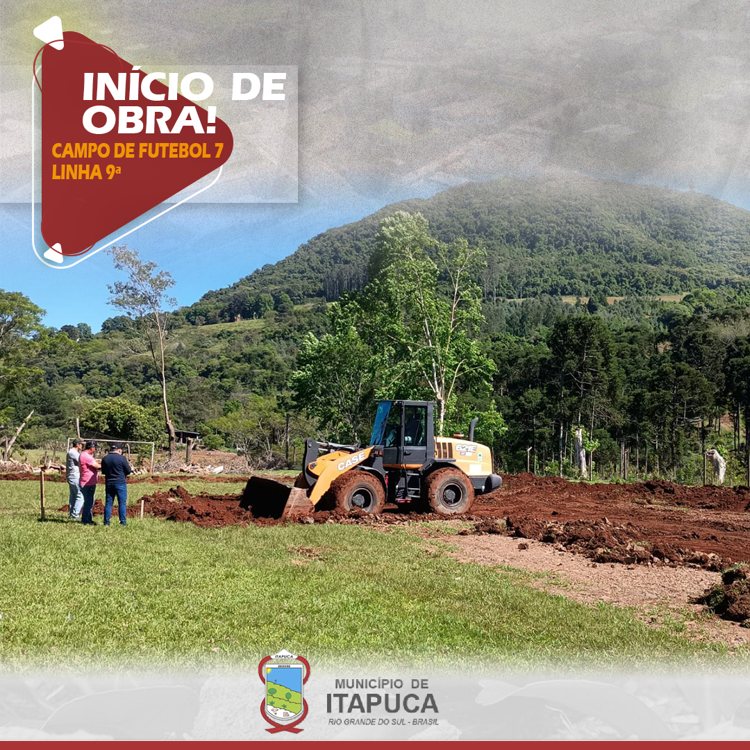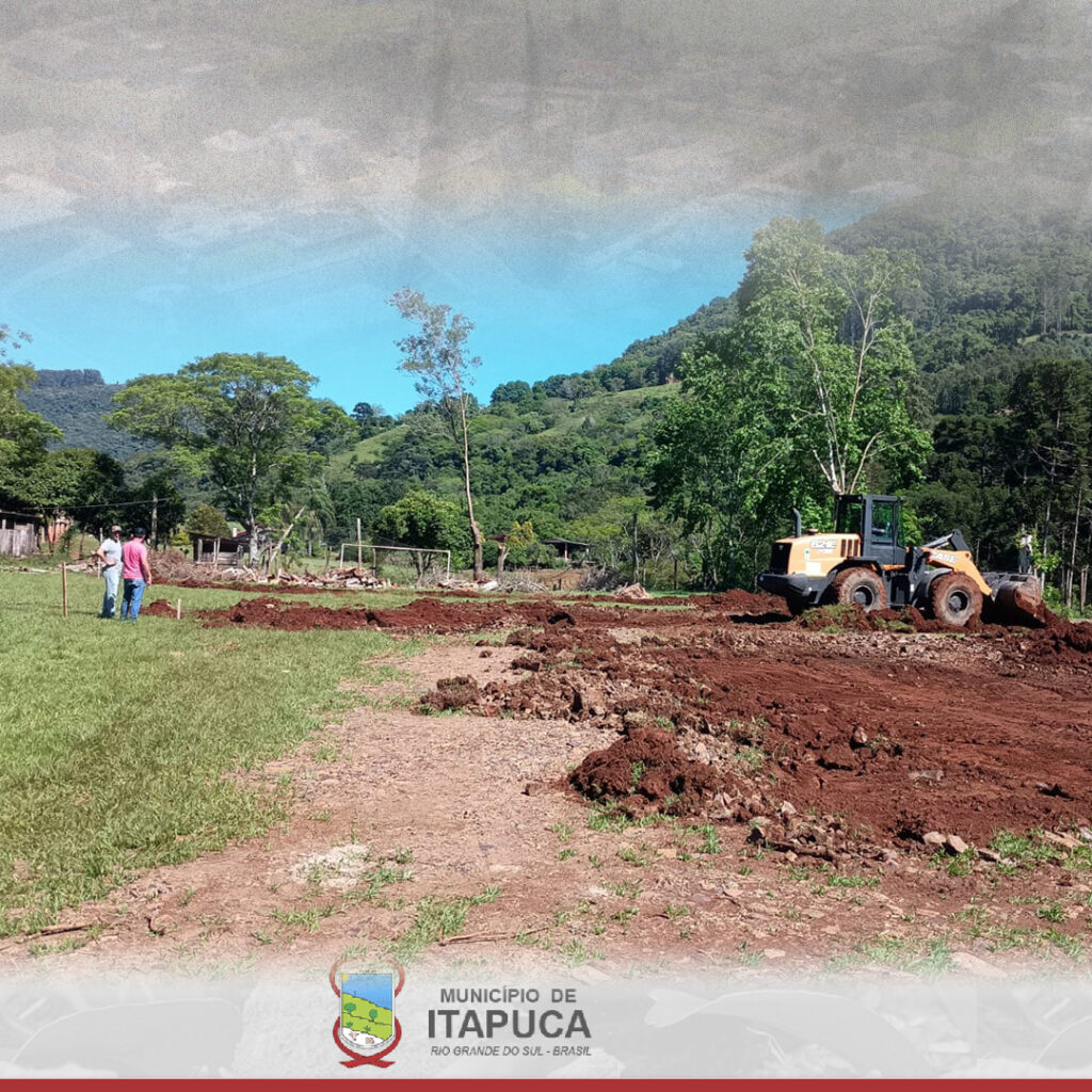 O Prefeito Municipal de Itapuca, Delavir Scorsatto, acompanhado do Secretário de Obras, Elizandro Ferreira Taborda, esteve presente no início das obras do novo campo de futebol 7 junto à comunidade de Linha Nona São Pedro.