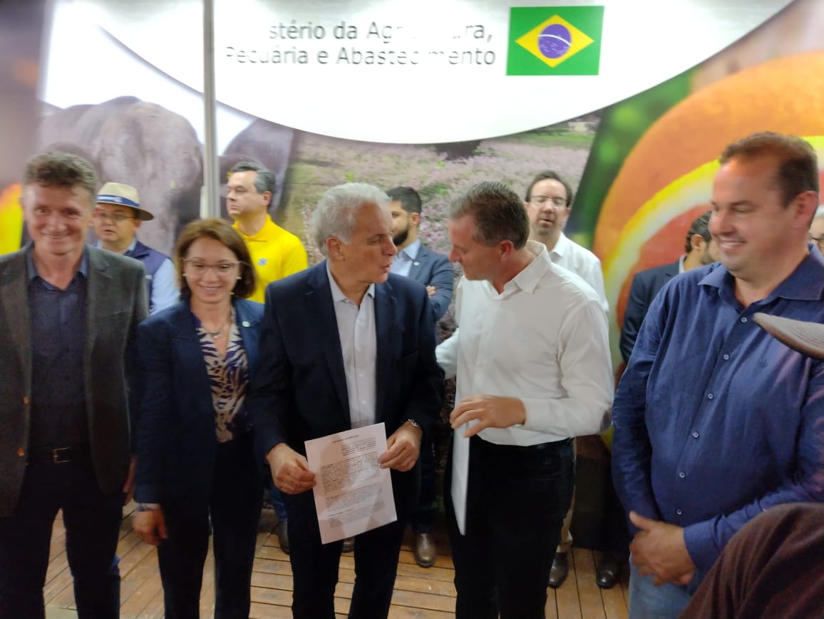 O Consisa deu, nesta quinta-feira, mais um grande passo para conseguir a adesão ao Sistema Brasileiro de Inspeção de Produtos de Origem Animal (Sisbi-POA). Durante ato no estante do Ministério da Agricultura, Pecuária e Abastecimento (Mapa) no Pavilhão Internacional da 45ª Expointer, em Esteio, ocorreu a assinatura do termo de compromisso e participação no sistema.