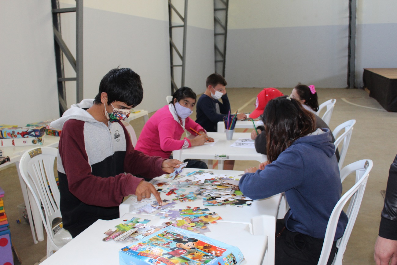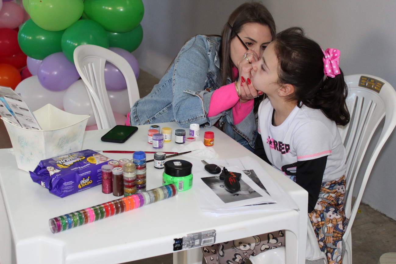 O evento contou com brinquedos, pintura facial, brincadeiras, um delicioso lanche e  um mimo (pirulito gigante, gomas e M&M) para alegrar a criançada.