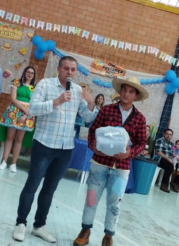 Neste sábado ocorreu a Festa Junina em Itapuca. O Ginásio de Esportes ficou lotado, crianças, alunos, comunidade escolar e a sociedade em geral se fez presente no evento. Com muitas atrações, brincadeiras tradicionais, apresentações, entrega de prêmios escolares, fogueira, e muita diversão! A Administração Municipal aproveitou a oportunidade para realizar a entrega dos uniformes escolares, compostos por uma camiseta manga curta, uma camiseta manga longa, duas calças, uma jaqueta e um par de tênis a todos os educandos do Pré ao 9º ano da rede municipal de ensino.
