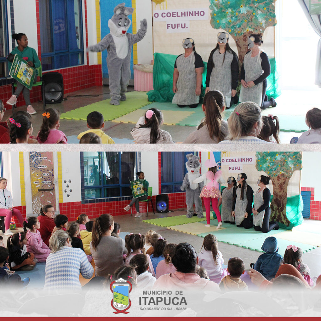 Hoje foi um dia mágico no turno da tarde da nossa EMEI! Em meio à alegria da Semana da Criança, os pequenos foram convidados a embarcar numa aventura deliciosa com a apresentação teatral de “O Coelhinho Fufu”, encenada com muito carinho e talento pelas nossas professoras!