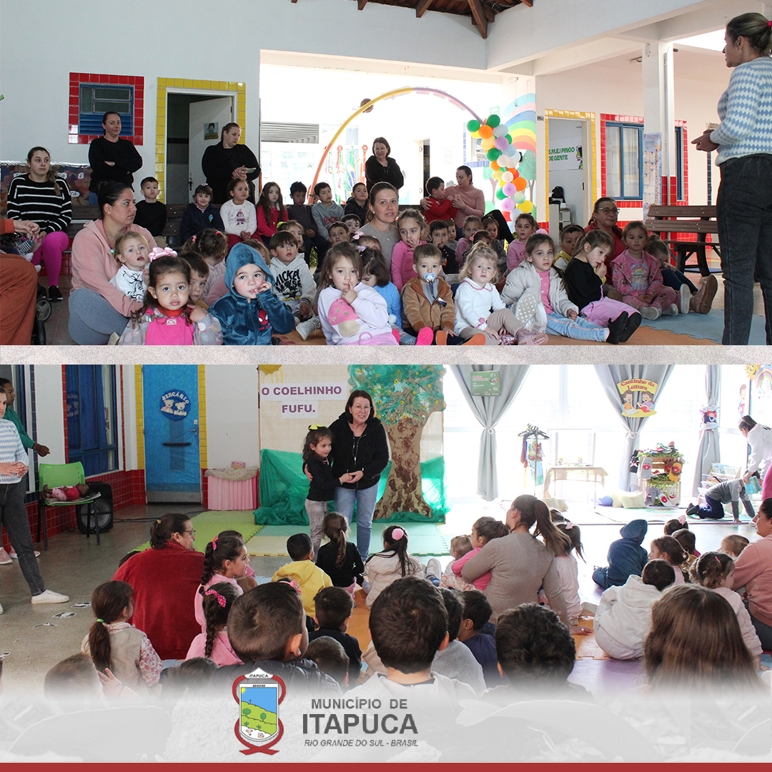 Hoje foi um dia mágico no turno da tarde da nossa EMEI! Em meio à alegria da Semana da Criança, os pequenos foram convidados a embarcar numa aventura deliciosa com a apresentação teatral de “O Coelhinho Fufu”, encenada com muito carinho e talento pelas nossas professoras!