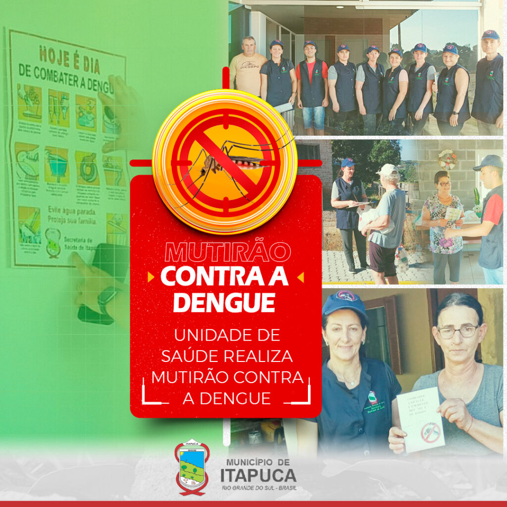 A unidade de saúde de Itapuca realizou ontem, na quinta-feira, dia 14/03/2024, um mutirão de combate a dengue. O objetivo da ação é estimular a população a verificar os quintais das residências, eliminando os focos do mosquito Aedes aegypti.