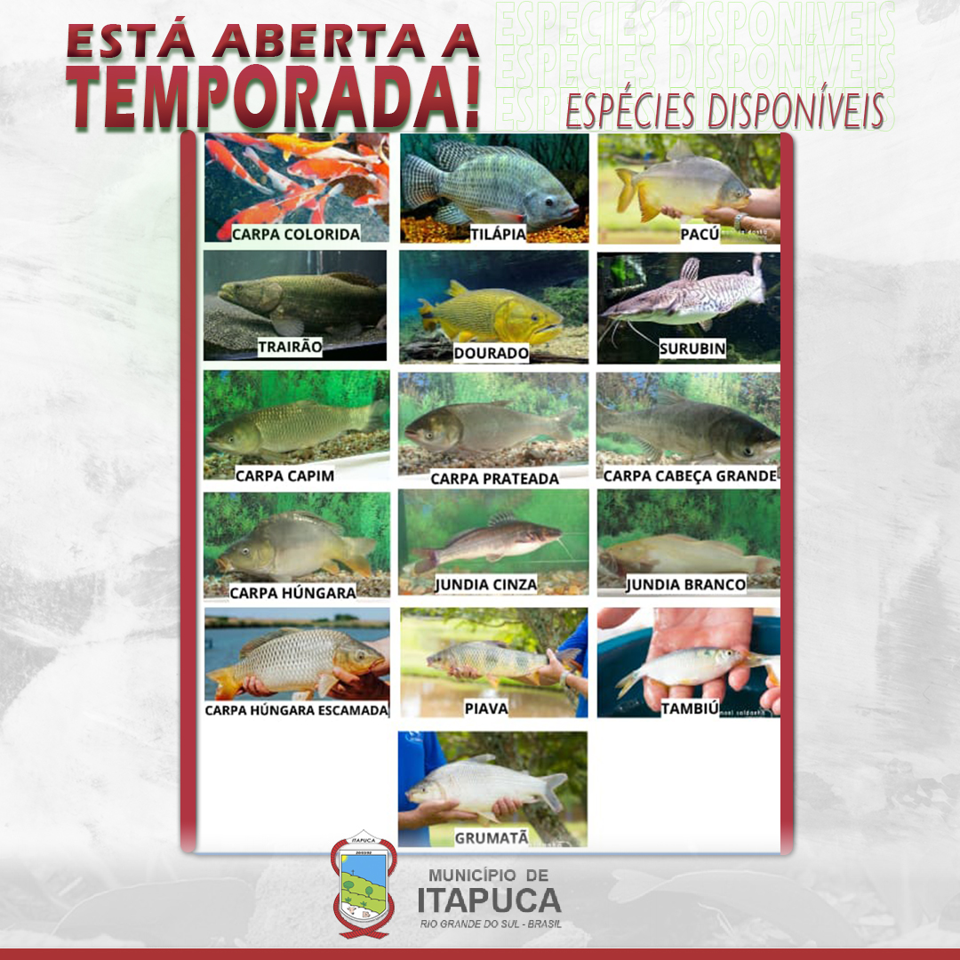 A Secretaria Municipal de Agricultura de Itapuca informa que estão abertas as encomendas de alevinos para os produtores e interessados do município. A iniciativa faz parte das ações de incentivo à piscicultura e tem como objetivo fortalecer a produção local e diversificar as atividades rurais.